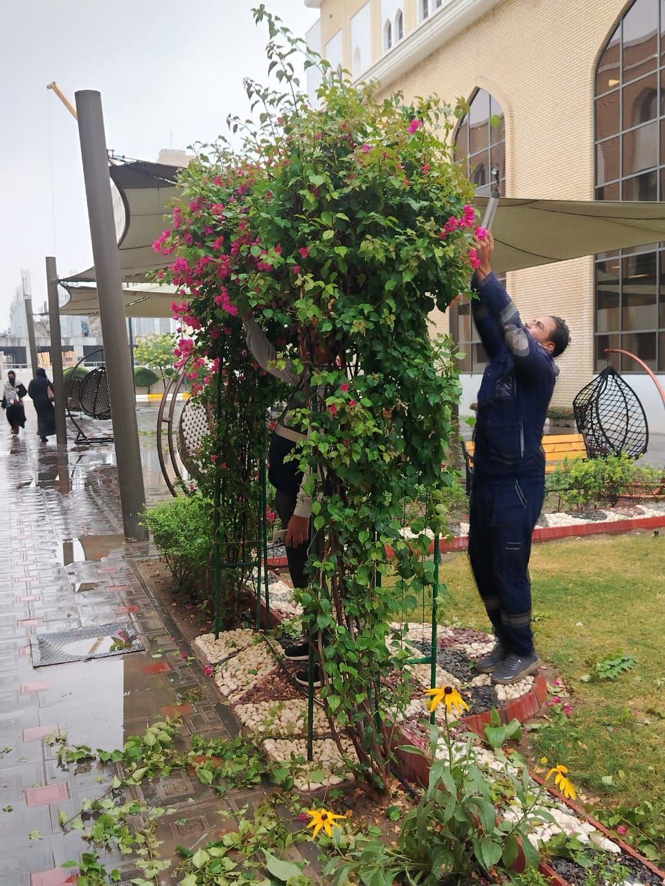 The photos show the efforts of the Maintenance and Agriculture team, who are planting a number of seedlings with the aim of increasing the green areas, improving the soil quality, and enhancing the university's sustainability system. This campaign aims to raise awareness of afforestation, limit pollution, and provide a healthy, comfortable, and pleasant environment for students and affiliates, and to preserve biodiversity within the university campus.